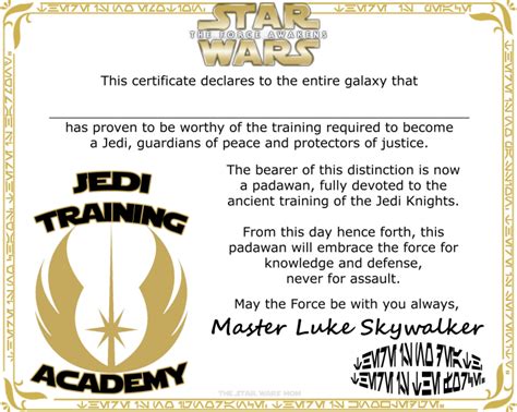 Jedi Certificate Template . Please leave my website on the certificate, since i am being kind enough to share it. Check out our jedi knight certificate selection for the very best in unique or custom, handmade pieces from our templates shops.